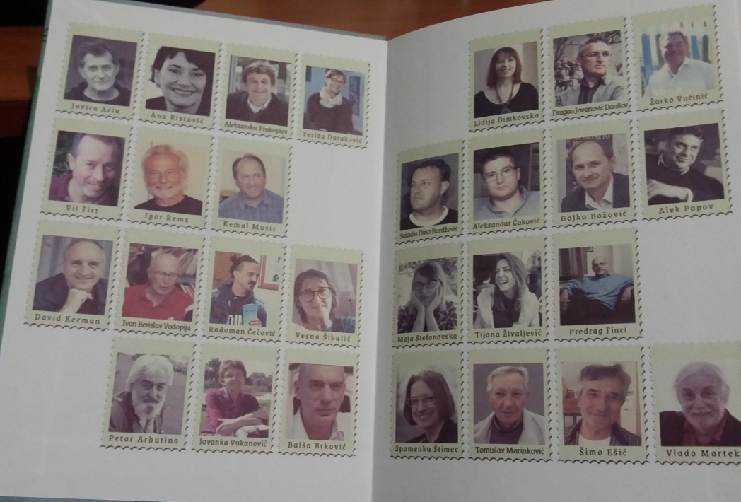 - U knjizi su zastupljeni Ana Ristović, Ferida Duraković, Lidija Dimovska, Saladin Burdžović, Jovanka Vukanović, Radoman Čečović, Vesna Šibalić, Dragan Jovanović Danilov, Kemal Musić, Tomislav Marinković, Gojko Božović, Balša Brković, Igor Rems, Šimo Ešić, Predrag Finci, Žarko Vučinić, Aleksandar Ćuković, Jovica Aćin, Alek Popov, Petar V. Arbutina, David Dako Kecman, Tijana Živaljević, Spomenko Štimac, Vilt Firt, Maja Stefanovska, Aleksandar Prokopejev, istakla je Sonja Živaljević.